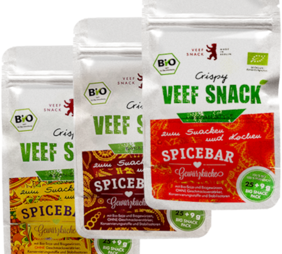 Wir arbeiten mit viel Lieben und Hochgenuss an unseren Produkten. In der kleinen Manufaktur arbeiten Spezialisten, die ihr Handwerk beherrschen. Auserlesene Zutaten aus biologischen Anbau werden mit Premium Gewürzen veredelt und in kleinen Öfen frisch zu bereitet. Nachdem der Veef Snack abgekühlt ist, wird es handverlesen in eigens entwickelten Tüten abgepackt. Jede einzelne Tüte erhält seine eigene Prüfnummer. Und dann sind die deliziösen Leckereinen Abfahrt bereit.